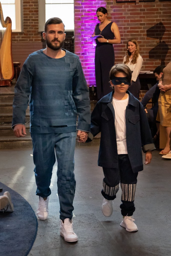 JACKET AND TROUSERS ARE 100% MADE OF INCORRECT DENIM PANTS OUT OF PRODUCTION WASTE FROM „ATELIER GARDEUR“.