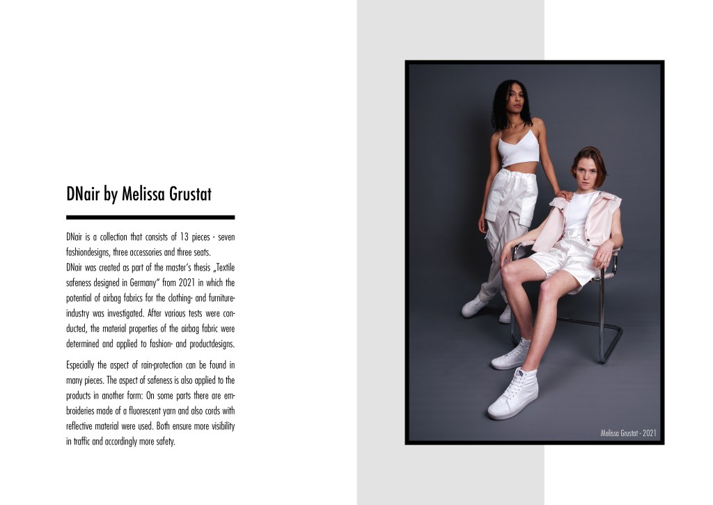 „DNair“ – Masterthesis 2021 DIGITAL LOOKBOOK OF „DNair“-COLLECTION PART OF MASTERTHESIS „TEXTILE SAFNESS DESIGNED IN GERMANY“ 2021 Ähnliche Beiträge