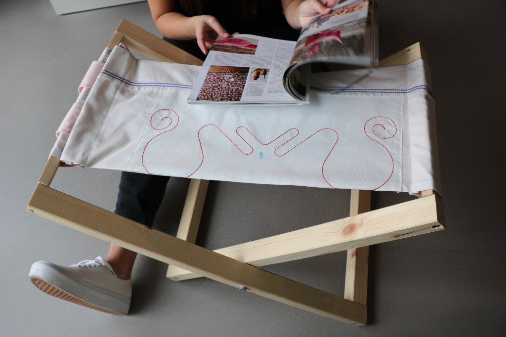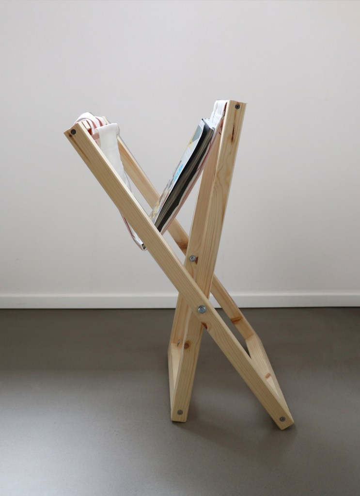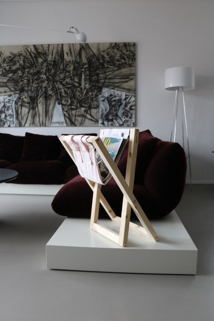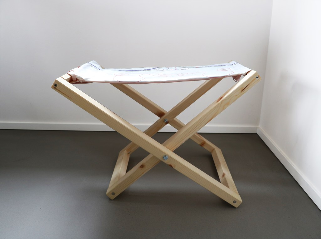 THE C-AIR-Y BAG IS A MULTIFUNCTIONAL FURNITURE. IT CONSISTS OF TWO WOODEN FRAMES – DISCARDED IKEA-RACK „IVAR“ – AND A TEXTILE SURFACE MADE OUT OF A DEFECTIVE AIRBAG AND COATED AIRBAG FABRIC.